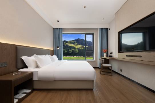 非常好的入住体验,前台小姐姐热情又亲切。而且没想到房间这么大,干净又宽敞,除了菊花茶还送了蜜蜂小镇的特产黑蜂蜜!健身房洗衣房设施齐全,早餐也很丰盛。酒店被群山环绕,空气清新,景色特美。