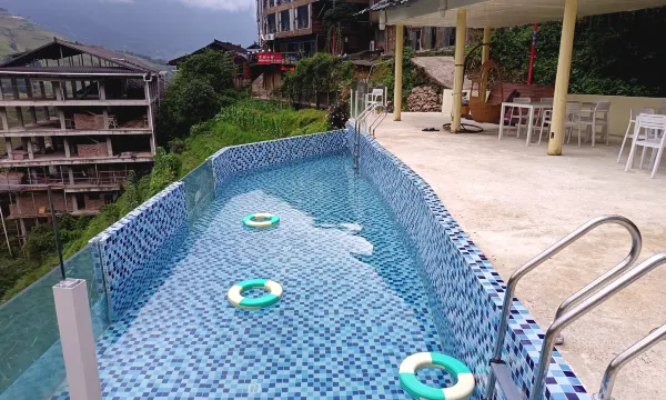 民宿是新的,位置很好,停好车后走路几分钟就到。老板服务很好,早早就去停车场等待了,还帮忙拿行李,超热情。民宿虽小,但啥都有,在一楼平台有个大大的龙脊地标打卡点,很多人在排队拍照。旁边还有一个小泳池,也是非常的热闹。最爱他家的咖啡吧,小老板手艺不错,会调很多样饮品。晚上吃的饭菜也很惊艳,当地菜非常地下饭,泉水鸡鲜到掉眉毛,竹笋腊肉让人狂炫3碗米饭,还喝了几杯老板赠送的龙脊公文包,很好喝。