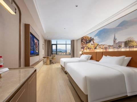 我是过来办事情 入住的这个酒店,整体看是田林新开酒店,装饰都是智能化,智能窗帘智能马桶,消毒遥控,还可以电视投屏看电影;房间卫生干净整洁,早餐非常不错;尤其是他们家的叉烧粉,真的很好吃。另外前台入住办理很热情,前台还热心推荐了当地的美食,酒店周边夜景很不错,强烈推荐!下次还会入住这家酒店