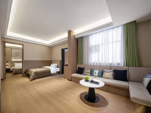 很好的酒店,房间空间很大,采光好,明亮,设施齐全,前台服务非常好,有免费的停车场,出行也很方便,离我想去的景区也很近,酒店小朋友的汉服也有,真的很喜欢。非常推荐。