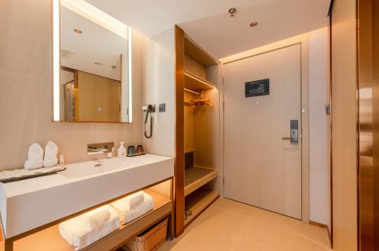 设施新,干净整洁,干湿分离很方便。有智能马桶,洗澡水很热,水量很大。早餐丰盛。离火车站打车很近。推荐!