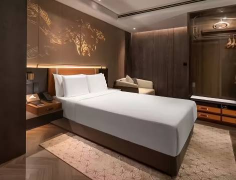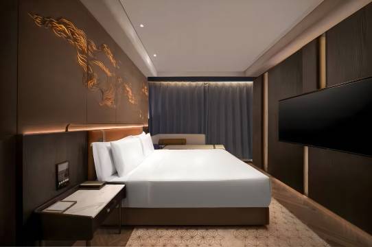 环境:比较好,床比较大适合家庭住,周边交通便利,卫生整洁,新开业的设备都比较新,前台小姐姐也很热情,帮忙介绍可以去哪里玩,哪里值得转转还指路,机器人送餐送水都很快很方便,到了酒店加了个微信需要什么都很方便