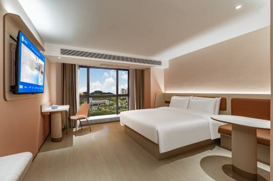 作为华住集团国民级连锁品牌,汉庭3.51版本全新力作入驻贵阳观山湖核心区,坐落于宾阳大道碧乐时光A区3栋,步行可达西南商贸城、仓储物流园,距金阳南站,23分钟步行即达,周边环绕贵阳职业技术学院、北京师范大学附属中学、贵阳奥林匹克体育中心,商务差旅、赛事观演、校园出行皆便捷无忧,下楼即享碧乐时光商圈餐饮、购物、娱乐一站式配套,让旅居更具烟火气。 【智能便捷体验|高效省心不折腾】配备华掌柜自助机,30秒快速入住、0秒退房,社恐友好;华小二机器人24小时无接触送物上门,使命必达;全店覆盖高速WiFi,会员一键登录,大堂特设共享办公卡座,插座充足、网络稳定,临时办公、商务洽谈轻松应对,完美契合商旅人士高效出行需求。【舒适安心守护|好眠又放心】升级金可儿品牌床垫,搭配优化隔音系统,隔绝外界纷扰,安享一夜好眠;24小时全自动自助洗衣房含烘衣机,高温烘干杀菌,搭配除菌洗护用品,洗衣更安心;酒店已完成专项甲醛治理,全方位守护住客健康,细节之处尽显贴心。【属地暖心服务|元气开启每一天】每日供应属地化早餐,现磨豆浆搭配贵州特色餐品,营养均衡唤醒活力;24小时免费行李寄存、免费矿泉水、茶包等贴心配置一应俱全,践行“好而不贵”核心承诺与“人在旅途,家在汉庭”的品牌理念。以亲民价格解锁智能、舒适、安心的旅居体验,无论是商务周转还是短途出行,这里都是你在贵阳的温暖落脚点~