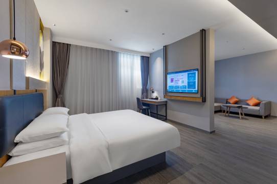 住的最舒服的一家酒店,性价比非常非常高简直就是超值,是住过的平价酒店中第一个卫生间和洗手台都没有水渍的一家,前台姐姐态度也很好,外卖是机器人,健身器材也很全面,非常满意~
