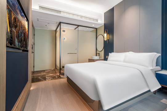 酒店位置超便利,步行可达地铁站和商圈。房间干净无异味,床品柔软亲肤,智能马桶和高速Wi-Fi超实用,前台服务热情高效,性价比拉满,下次出行还选这!