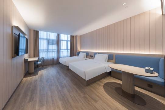 这家酒店在距离和评分方面都表现出色,是综合实力最强的选择。酒店整体环境干净整洁,床品十分舒适,前台服务态度特别好,办理入住很快。特别值得一提的是,酒店的惊喜双床房非常宽敞,目测约四十多平,性价比很高。离火车站很近很方便