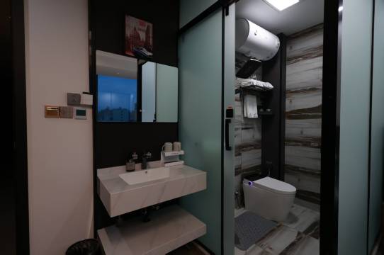 十一回家返程入住的,环境很好,这是目前在蓝田住过相对最好的宾馆了,整体环境很好,停车也很方便。房间面积很宽裕,带孩子也很方面。卫生间是智能马桶,停车入住和出行都有工作人员引导,推荐入住!