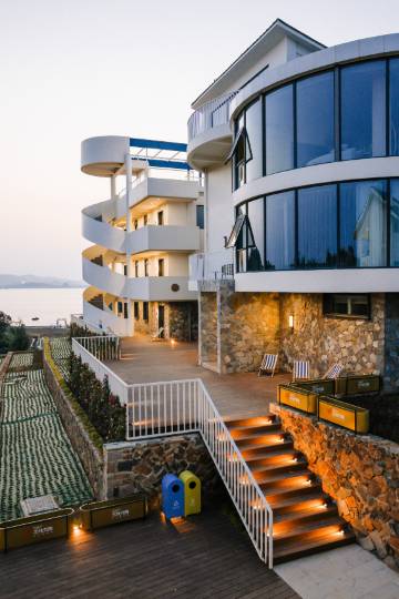 2、硬件:酒店新开,所以设施肯定是非常不错的,新一般就代表好,拥有多个绝佳的看海公共区域以及室内阳台和户外院子随时躺看海,同时可以满足各种露天的烧烤之类呼朋引伴的活动,各种款任君选择。