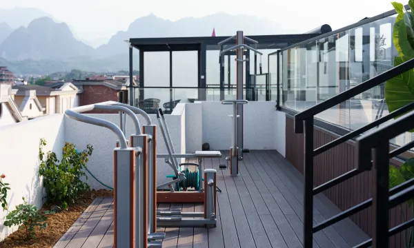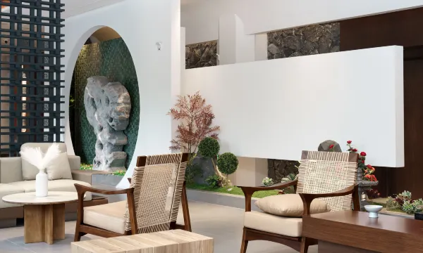 云深之处见桃源,张家界天门山麓徐园酒店静立其间。此地距天门山索道公司仅咫尺之遥,车行不过两三盏茶光景,即可置身三千奇峰怀抱。青瓦白墙隐于苍翠,雕梁画栋暗藏玄机,精舍各具风韵,或枕流云,或揽松涛,皆以"小度"灵枢掌灯启帘,声起处,满室流光应和,颇有"居山不隔红尘"之妙。 登临琼阁之巅,方知别有洞天。九曲回廊穿花拂柳,引客至云端瑶池。碧波潋滟映天门倒影,恍若太虚幻境。凭栏远眺处,天门洞开,雾锁重峦,恰似米氏云山画卷徐徐铺展。晨起可沐朝霞而泳,暮至宜携星月烹茶,四时景异,朝暮不同。 园中另有乾坤:晨光阁里珍馐佐云雾,清议堂内雅集伴松风。更设流云筑以酬知音,霓裳苑里清歌绕梁。管家皆习古礼,待客如侍故交,凡所需所求,皆能化入山水诗意。仁者乐山,智者乐水,徐园既得山水之灵,兼备智能之便,诚为仙凡两宜之居所。