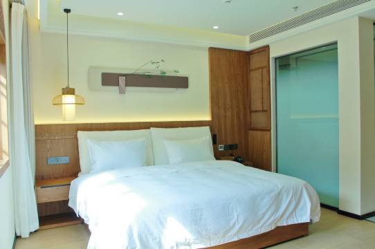 服务非常好,有观光车接送,还引导停车,停车居然免费!设施也可以,智能窗帘智能马桶,还有一次性马桶套。还带早餐,早餐环境也好,可以在院子里享用