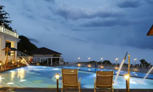 宾馆为欧式风格的别墅式,浴用矿泉水引入每个房间,让你足不出户就能私享天然温泉浴。