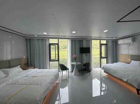 今年第二次来都安度假了,这家民宿让人印象深刻。外观是民宿,其实内里比很多酒店做得还要好。玻璃是隔音的,洗脸巾和浴巾、马桶垫都是一次性的,房间干净整洁卫生宽敞,无敌的性价比加上窗外美景,扣不出一丁点问题。