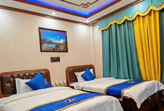 房间设施齐全舒适、带有独立卫生间、服务周到、老板很热情,旅游资源丰富、房屋内有氧气设备,不怕缺氧。日照金山很美,远眺库拉卡日雪山下三个圣湖,雪山圣湖触手可及,这是我本次行程的亮点之一。