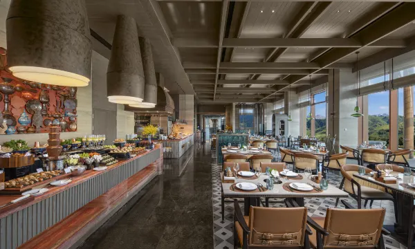 早餐提供中式、西式以及新疆本地特色的菜品,种类丰富,品质上乘 餐厅主打西餐,但融入了新疆本地特色,如烤羊排,用秘制香料和本地烤制手法,去除了膻味,口感很棒 下午茶的甜点和咸点都不踩雷,颜值超高,适合拍照 酒店拥有那拉提地区少见的无边泳池,对面就是那拉提草原,夏天绿草如茵,冬天银装素裹,景观迷人 健身房空间宽敞,窗外是一片绿意,运动时可欣赏美景,让人心旷神怡 还养了八匹骏马 从门口礼宾、前台接待到餐厅服务人员,各个岗位的工作人员都热情积极,能迅速解决问题!