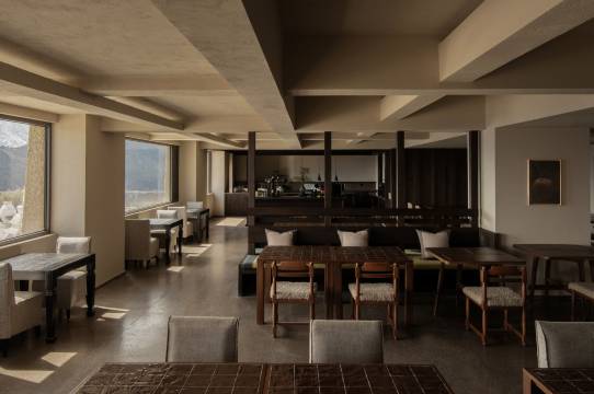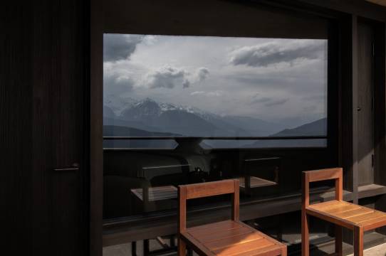 然后这个的特色和当地藏式文化融合的非常巧妙。还保留了匠庐家一直以来的可以整个敞开的落地窗户。所以这个咖啡观景位真的绝美。