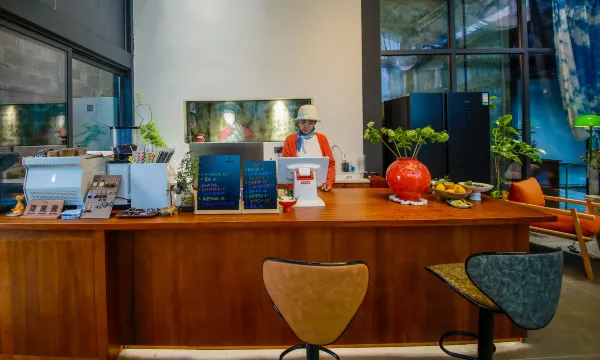 位于黄山市徽州区西溪南镇西溪南村下街34号楼,距离高铁站3分钟左右车程,距离机场30分钟左右车程,距离市中心25分钟左右车程,距离黄山风景区山脚下40分钟左右车程!是黄山市目前一家以非遗蓝染为主题的高端民宿!集住宿、简餐、中餐、咖啡、甜品、下午茶、棋牌为一体的文化主题民宿,总面积约550平方米! 民宿有1间中餐包厢,2个茶空间,1个咖啡厅,1个棋牌室!客房可单独订房,也可整栋整租!房设施:ToTo卫浴、戴森吹风机、飞利浦熨烫机、索尼电视机、菲拉格慕洗漱用品、纯植物染床品 其他特惠:入住客房可享受一次非遗蓝染体验,一份黄山茶手伴