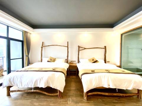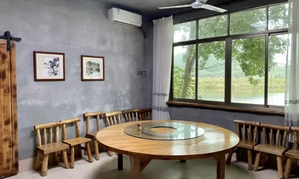 亲爱的客人,欢迎来到我们民宿! 我家民宿是一间以原木为主题的一间特色民宿。所有家具、装饰设计都是利用山野间的各种木头制作而成,既环保又实用。另外民宿里所有的生活用水,都是经检验过的优质山泉水,一直饮用这里山泉水的本村老人,八九十岁甚至百岁的比比皆是,很多客户跟本地附近的村民都到我们这里罐装山泉水回家泡茶饮用。再有我们的餐厅厨房,绝不将就地一直坚持为客户找寻散落在民间的新鲜、地道食材,力求为客户呈献光盘式的粤北美食。 这里远离尘嚣浮华,(附近二三十公里没有污染企业)周边山环水绕,门外江风拂面、鱼儿成群,朝夕鸟语花香、波光粼粼,让您随手捏一把空气都是甜的。 入住这样一个地方希望您能喜欢! 【位置】我家民宿位于清远英德市黎溪镇北江边上的一间民宿。 【特色服务】小木船游江、雾景拍照、观星赏月、野钓、捕鱼、麻将、K歌、烧烤、摘果种菜,刨地耕田农家乐。 【户型功能】君盈晓筑·民宿,这里空气清新、养分充足定让您睡上美美的一觉。 我家民宿可以做饭、烧烤,捕鱼加工、适合家人和朋友出行,单位团建、同学聚会、生日宴会、露营野炊。 【尽享私密】湖边独栋别墅 远离喧嚣,周边宁静祥和。 【干净卫生】我们有专业的保洁清扫,让您住的安心