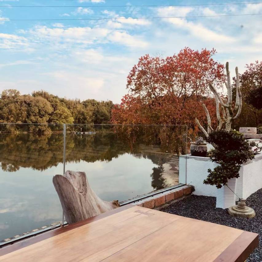 民宿颜值太高了!白墙灰瓦,湖光十色,随便拍都出片。房间都是原木风,床正对湖景,对宠物也很友好,狗狗特别喜欢!还有小伙伴跟狗狗玩。公共区域有书吧和露台,晚上和其他住客聊天看星星,超级好评!