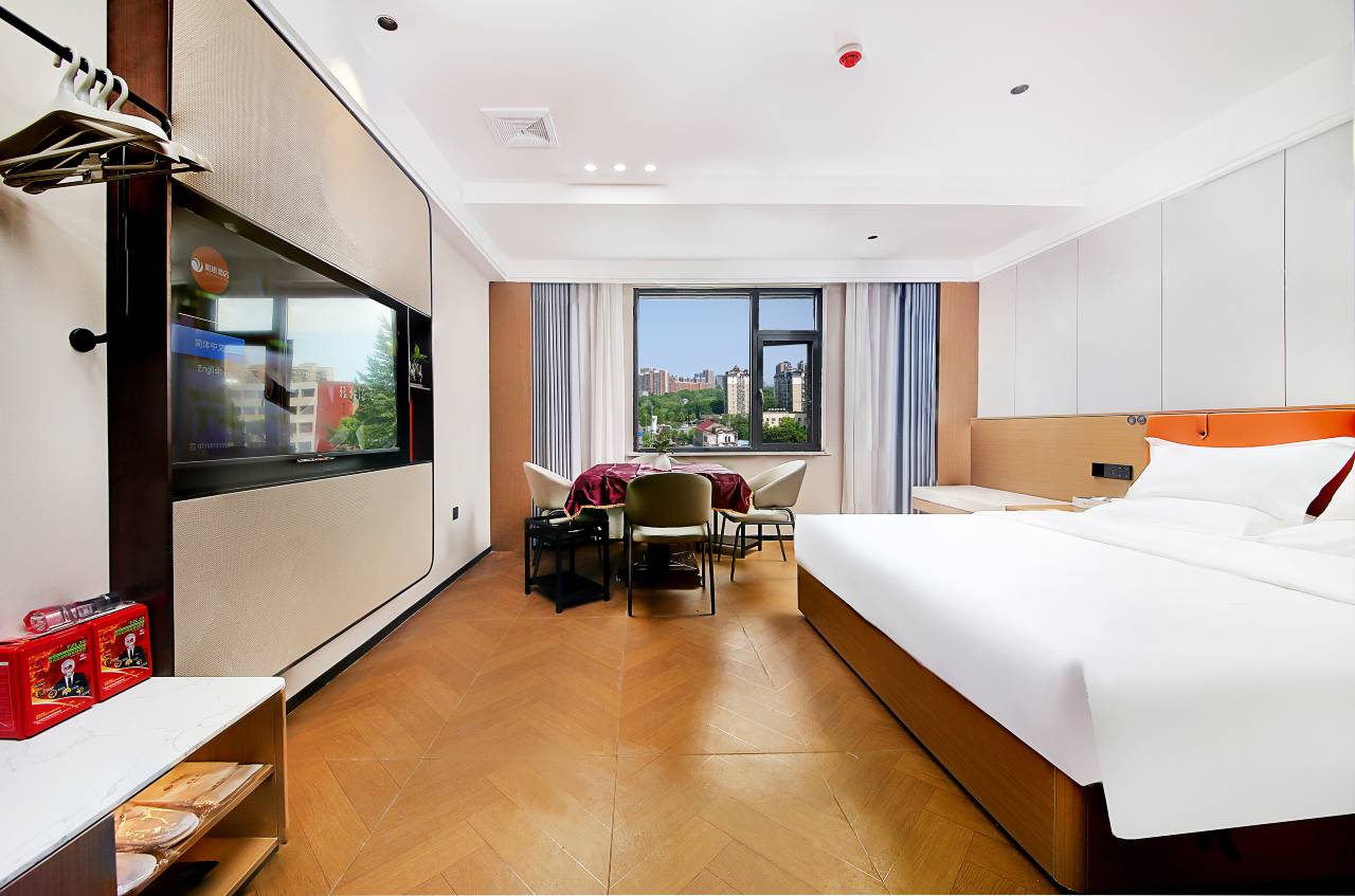送孩子上学住这里,很干净,前台小姐姐服务态度好,很热情,打扫卫生的阿姨也很好,要什么备品都及时给补上,遗憾的没拍几张照片,连住了9晚,很开心,推荐送长大西校区的家长住这里,方便,条件好,还不贵!