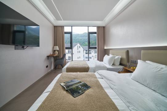 虽然这块民宿很多,因为离港首索道近,但放眼望去这家门口的设计就很出彩与众不同,有鱼池摇椅户外遮阳桌椅,层次丰富用心设计的花花草草。房间特别干净,装修设计和用材都很高级,看得出老板是有品味的人。我们是亲子房,设计很合理,有智能窗帘和马桶,还贴心的准备了一次性马桶垫和一次性大毛巾。老板特别热情周到,我是带老妈出来玩,出游的种种问题都细心周到的帮我完美解决,还免费帮我把行李送到金沙索道,连油钱都不肯收,太感谢老板了,㊗️老板生意一直兴隆!