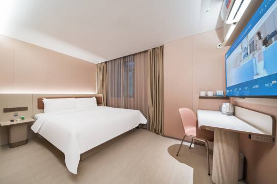 房间比较安静,晚上关了窗帘后遮光性很好。房间内干净整洁。瓶装水给的够够的,非常足够。酒店早餐比较大众口味,天南地北的人都可以吃的习惯。前台很热情,服务很好,机器人也很好玩。