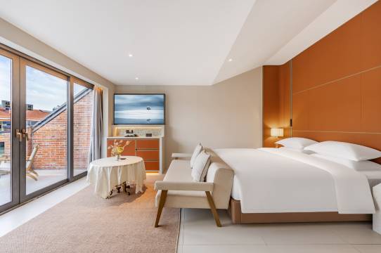房间干净卫生,带露台带浴缸,房间很大很亮,住的舒服放松,服务也很好。会有专人带领去朱家角景区的小路,还有赠送的汽水,苏打水,距离景区也不远。总体玩的很开心,对住宿很满意。因为今年刚开业,还蛮新的。推荐去体验。
