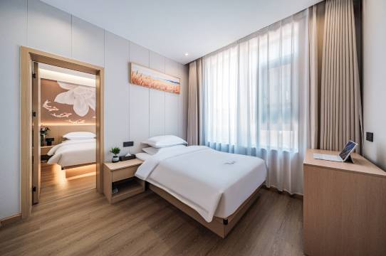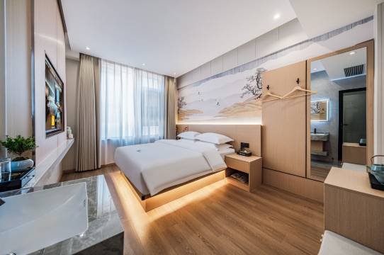 这家酒店不仅交通方便,周边生活配套也很齐全。马路对面就是地铁站,出门坐车方便,附近还有餐馆。房间不临街,睡得很好。房间干净整洁,床品舒服。全屋智能系统很灵敏,语音控制灯光窗帘特别方便。前台服务热情,还给我们推荐了附近好吃的店。下次来这边玩,吃喝住行都方便,还会选这家。