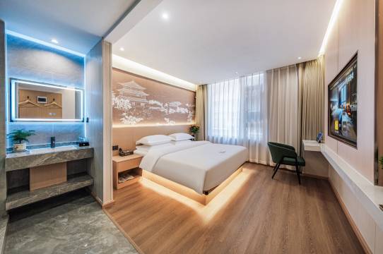 酒店离几个景点都很近,坐地铁站几站就到。房间干净整洁,玩累了回来休息很舒服。前台服务热情,介绍了游玩路线。全屋智能系统晚上玩回来用很方便,躺床上就能关灯。旅游选对酒店很重要,这家值得推荐。