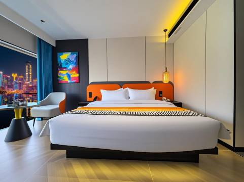 我选的是江景房,装修很有质感,轻奢风,看着就很舒服,干净大气,环境和设施到位是真不错啊,房间采光不错,房间卫生打扫的挺干净的,房间真的爱,白天往下望就能看到江景,对面楼房错落有致,江上轮船缓缓驶过,岁月静好的模样~晚上逛完街回去还能感受到这个城市的灯火璀璨与繁华,躺着就能看嘉陵江,何乐而不为呢,工作人员热情有礼服务超好,总是能在第一时间满足我的需求,在这里住宿体验绝佳,强烈推荐!