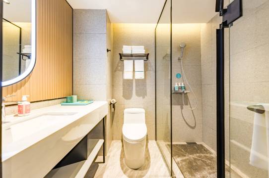 很满意的一次入住,接连住了两晚,中央空调,智能马桶,一切设施都非常齐全,前台服务热情周到,房间宽敞明亮,干净卫生,下次还选这里