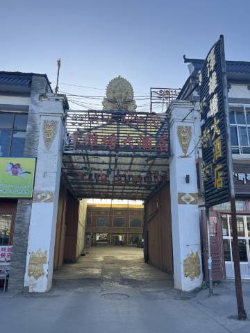 旁边的自助火锅挺好的。酒店门口就是大停车场,停车场有棚不用担心下雪下雨,暖气也早早开了。因为下雪一早停水了,不过给了我2瓶水还行