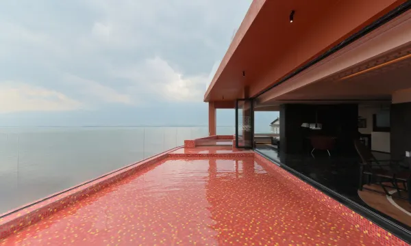 纯粹的一个分享贴,住的太舒服😌了,一开始路过的时候被橘红色外墙和大厅吸引过来,才发现原来是一家咖啡厅➕餐厅➕住宿即为一体的民宿,看过房型后立马就选好了来大理第二天就住这了!本来想订两晚但是很遗憾第三天被别人预订了😢,一楼的大厅非常的有设计感,实木的条纹沙发和地上铺的异域风地毯很搭,下午茶点了她家的招牌芝士蛋糕和小甜点,还有我最爱的热可可,抹茶拿铁,到了傍晚,蓝调的洱海在房间巨大的落地窗前显得格外的迷人,不得不提一下我住的这个房型,整个民宿只有三间房,我住的套房这楼只有一间屋子,宽大的客厅旁边推开落地窗就是泳池,实木家具和大牌洗护用品让我有种到五星级酒店的错觉,很难想象这是一个民宿有的标准,晚餐我也没出去吃,在二楼的餐吧吃了西餐🍴,很推荐点他们家的黑松露菌菇炒饭,炒鸡香,但是我没吃完还打包了回房间半夜饿了可以吃两口哈哈哈,牛骨汤也非常好喝,对了如果是爱听歌的小伙伴可以用一下房间内的音响,听着歌看洱海氛围感直接拉满!第二天吃完管家送上来的早餐后不舍的收拾了行李准备转战海西,临走前管家还送了挂耳咖啡伴手礼帮我拿行李目送我坐车离开👍