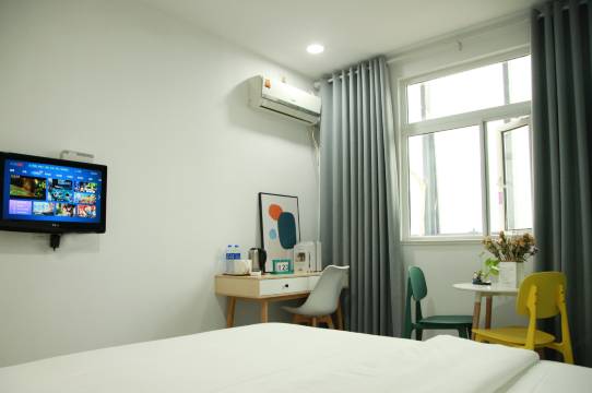 这是我住过算最大的大床房之一二,房间充电孔有五个,厕所有洗衣机和淋浴房,空调制冷效果可以吹干不少衣物,感觉比较上乘。个人建议,仅供参考。