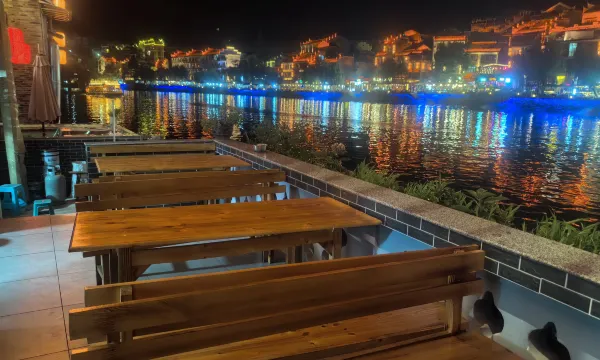 酒店在古城核心步行街 车开到东门附近有免费停车场 老板会有人过来接应 也还比较方便 房间都是智能的 配有一次性浴巾毛巾拖鞋 很不错的客栈 住的江景房 夜景很美 有阳台 负一楼就有江景餐厅 酸汤鱼很正宗 最赞的是老板家的农夫山泉矿泉水无限畅饮 大气的老板