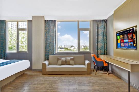 房间是新装修的,干净卫生,洗衣房健身房一应俱全。酒店离地铁不远,出行很方便。前台很热情。性价比很高。