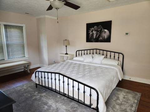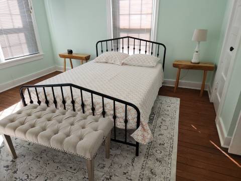 布莱克摩尔农舍位于里士满和威廉斯堡之间,是一座坐落在仍在运营的干草农场中的永恒瑰宝。翻新后的农舍依然保留着其独特的魅力和历史底蕴,拥有橡木和黄松木地板、古朴的木工、简约的装饰以及四周开阔的田野。布莱克摩尔农舍充满着浓郁的乡村气息,最多可容纳四位客人,配备齐全的空调和暖气、大屏幕电视和无线网络,以及充足的停车位,可停放您的船只或房车。