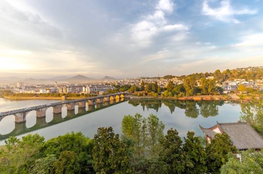 还可以,观景台是公共的,能看到河和徽州古城。走过去也还不算远。
