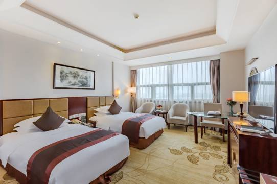 大堂气派有独特的装饰风格,房间干净卫生舒适又大气。洗漱品质量好,设备设施齐全完善。周围环境优美,临商业街,吃饭购物都很方便。最吸引人的地方就是吡邻烈士纪念公园,可以参观博物馆,游公园。在房间也可远眺全城美景,真是休闲度假好地方。最爱的是那丰盛美味的早餐,花色品种繁多,有西式风格和地方风味特色小吃及歺饮。每次到六安必住之处!