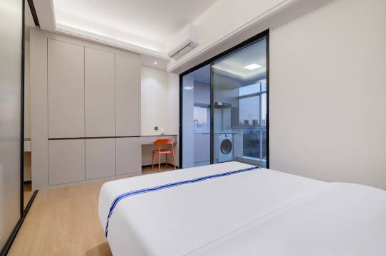 房间很干净,床品舒适整洁,,前台服务很好,响应速度快,投影设备看着很清晰,公寓的楼下附近有很多好吃的。