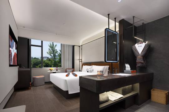 这家酒店实在是太棒了,前台办理入住很快,还给提供美食和旅游功率,进房间第一眼就很惊艳,房间里面干净整洁,还有可爱的小考拉~,全屋智控有小度,拉窗帘开空调都可以,简直是懒人福音,酒店早餐也很不错,面条超级好吃,推荐来都江堰游玩的朋友们可以考虑这家酒店哦,性价比超高!