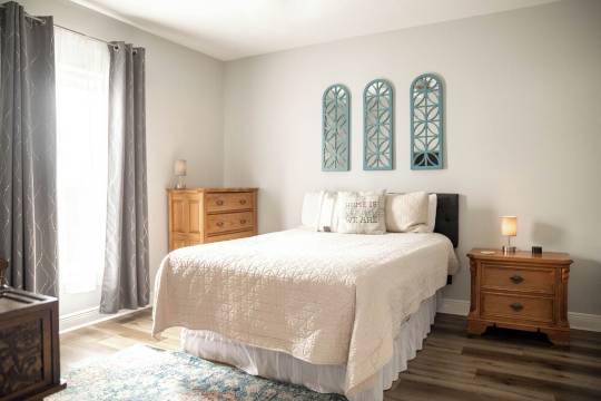 在主卧室,您会发现一张大床,私人浴室设有带座椅的大型步入式淋浴间。
