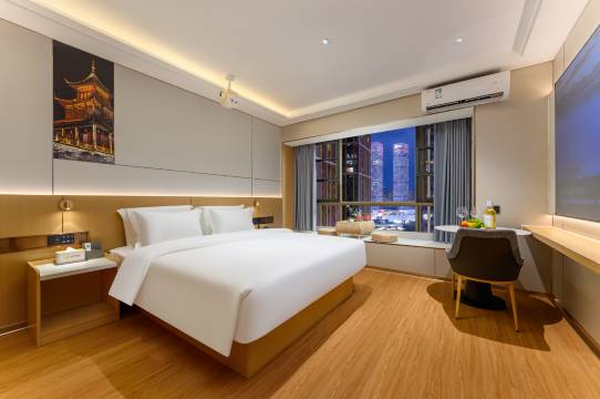 酒店位置不错出行方便,去哪里打车都不贵,下楼吃东西方便。房间挺大,床品干净卫生,房间有小度智能很方便。