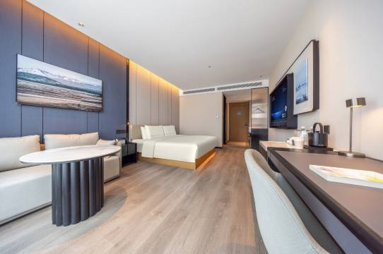 酒店位于青岛市北区,交通枢纽,商务区,热门景区周边,毗邻地标(青岛会展中心、地铁三号线,地铁四号线,浮山,李村步行街,海尔工业园,青岛啤酒总部),便于商务出行及旅游住宿。 周边绿化率高,靠近自然景观(齐鲁康体公园),闹中取静,提升入住体验