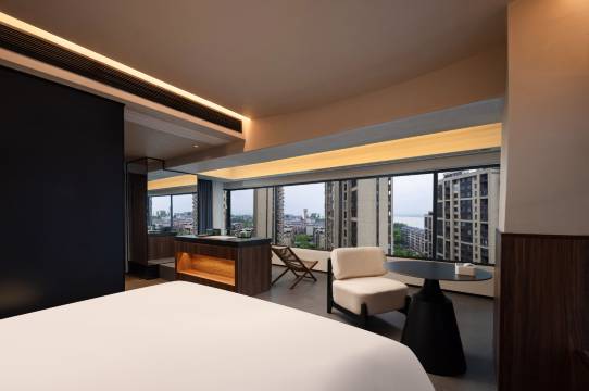 酒店坐落在洞庭湖东岸的金茂未来城12至14层,以“云端栖居”为理念,为宾客提供融合湖光山色与现代科技的住宿体验。 便利位置与景观 酒店地理位置优,驱车约5分钟即可抵达核心景区岳阳楼,步行约8分钟可至洞庭湖生态步道。其高层设计让多数客房可将“白银盘里一青螺”的君山岛、烟波浩渺的洞庭湖及千年名楼岳阳楼的飞檐轮廓尽收眼底。 酒店房型设计以宋式美学风格融入现代家居智能,均配备AI智能客控系统,可通过语音指令操控房间设施。主要房型包括: 景观房型:如湖景大床房/双床房,坐拥开阔洞庭湖景。 特色房型:如电竞湖景双床房,满足多元需求。 套房房型:如落日阳光套房、270度环湖全景套房,空间宽敞,景观俱佳。 沉浸式周边游览 酒店是探索岳阳楼及洞庭湖周边文化的理想起点。核心景点与体验集中在岳阳楼历史文化保护利用示范片区内: 岳阳楼景区:地标所在,登楼怀古,感悟“先忧后乐”的人文精神。 巴陵广场:毗邻岳阳楼的城市客厅,是观赏洞庭湖日落、感受当地休闲生活的佳处。 历史文化街区:可从广场轻松步行至汴河街(仿古商业街)和洞庭南路历史文化街区,在青石板路与老建筑间品尝地道湖鲜、小吃,体验非遗文化与市井烟火气。 酒店以其智能舒适的居停空间、得天独厚的观景位置,成为宾客领略巴陵胜状、畅游“江湖名城”的优质旅居选择。
