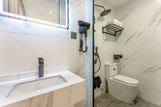 1这次入住真的超出预期!房间明亮宽敞,卫生做得无可挑剔,床品柔软舒适,隔音效果也很好,晚上休息得格外安稳。工作人员态度亲切,服务周到不拖沓,细节处尽显用心,性价比很高,已经推荐给朋友,下次来还会入住~