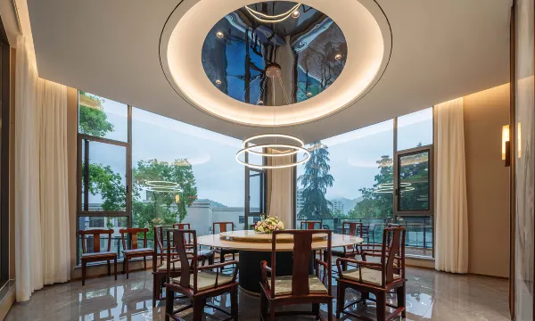 通山华美达安可酒店直接把度假的仪式感拉满!整体是新中式+自然肌理的美学融合,既有山林栖居的静谧,又不失低调高级的质感,非常出片。公区每一处细节都藏着巧思,与窗外山景相映,走在其中像逛沉浸式艺术空间。