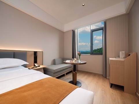 酒店坐落在森林覆盖率85%的省级森林公园里,就是了解到这一点才毫不犹豫选择了这个酒店,果然没让我失望。推窗就是层峦叠翠的山景。公共区域随处可见精心打理的绿植,空气里满是负氧离子,不管是散步还是静坐,都能感受到沉浸式的静谧与治愈,堪称逃离城市浮躁的宝藏栖居地!