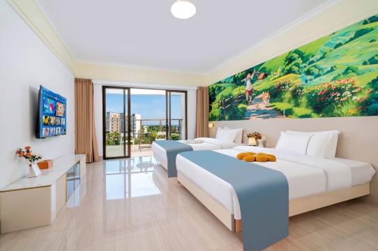 我们定的是三房一厅,房间环境非常好,而且装修特别新,能看到一望无际的全海景,躺在床上就能看到海景是多么惬意啊,真希望能每天醒来都看到这样的风景。加上老板服务态度非常好,也会和我们推荐游玩攻略。晚上父母房间冷气坏了,老板立刻免费安排另一间房间给我们,这个服务态度真是一级棒👍,强烈推荐这家酒店,离免费沙滩就几分钟就到了,离十里银滩海滨浴场就一公里,开电动车几分钟就到了