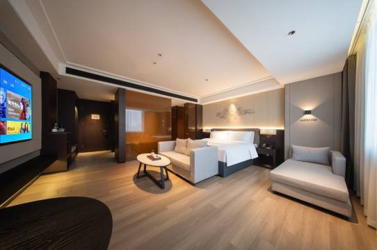 酒店整体风格简约大气,房间宽敞设施齐全,隔音效果也不错,地址位置好,离地铁站很近,距离景区近都很方便,出行也方便,服务也很热情周到,酒店有洗衣房,自助式的很方便