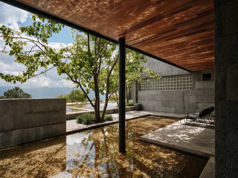 我在想那些自然拼接的石头,那些清水混凝土,那些木材钢材,是如何压过崎岖蜿蜒的山路,又是如何驮上山的。如何组织那么多石匠,木匠,泥水匠师傅完成这一座去雕饰,从山林草木里自然生长出来的酒店和美术馆。回到大地的肌理,都是怀着对自然的敬畏。